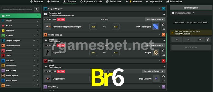 A aposta Br6 oferece aos jogadores a experiência mais conveniente de apostas em eSports!